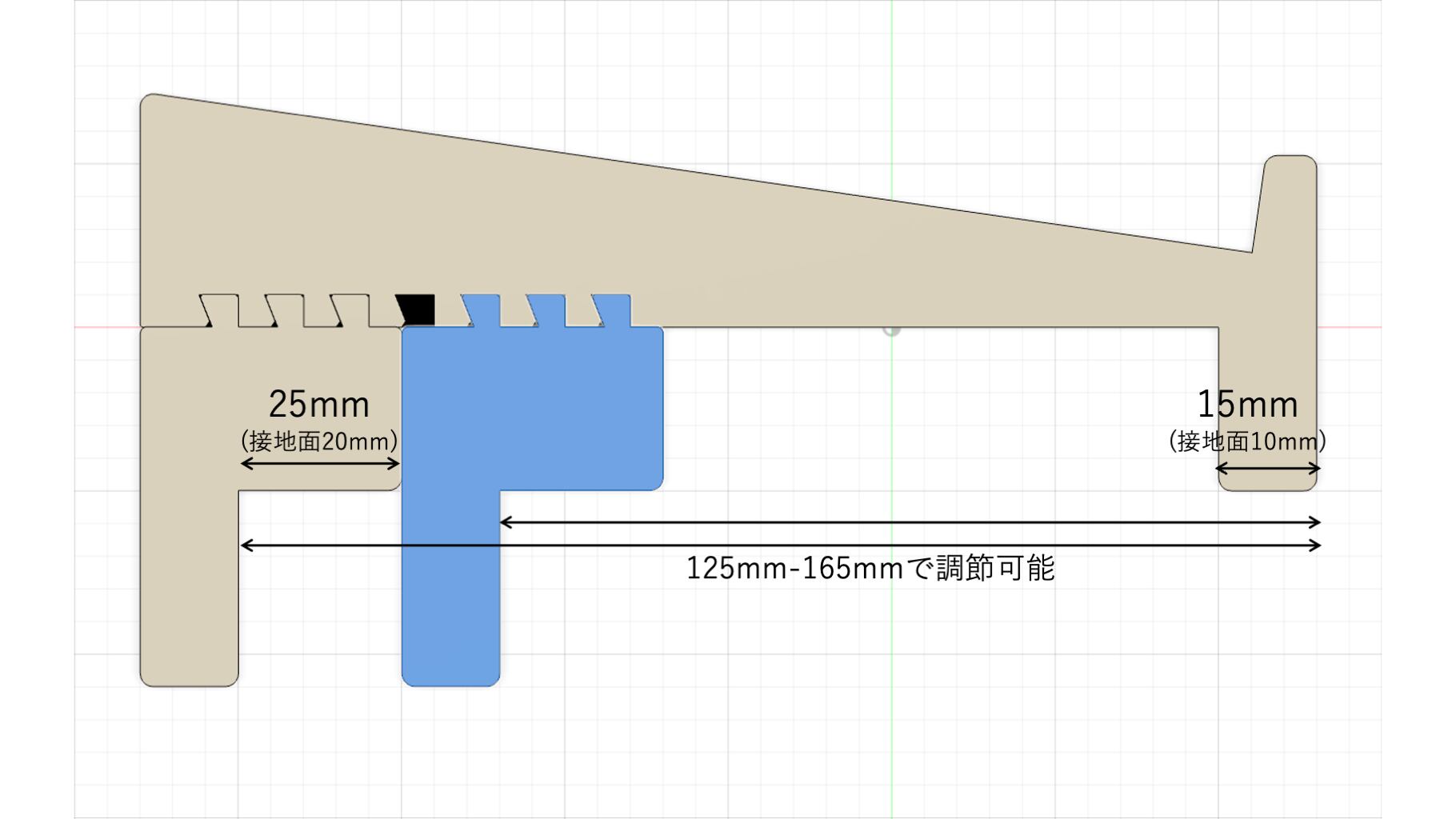 実際のサイズ感がわからないとか、自分の環境で使えるのかわからないという方向けには、A4で印刷すると実物大の型紙(横から見た形状のみ)を印刷できるPDFをご用意しています。こちらをダウンロードいただき、ご自身の環境でお試しください。