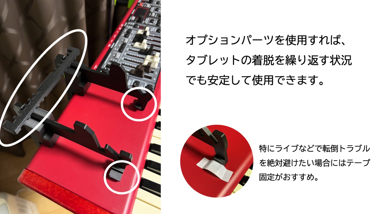 背面に引っ掛けることができるので、安定してキーボードに設置することができます。